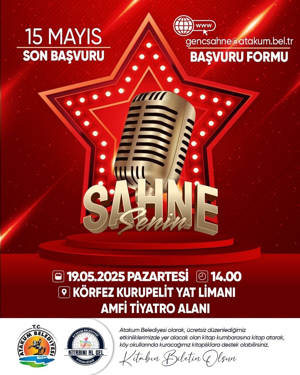 Atakum Belediyesi, 19 Mayıs etkinlikleri kapsamında gençlere yönelik ‘19 Mayıs’ta Sahne Senin’ programı gerçekleştiriyor. Müziğe ilgi duyan gençlere yeteneklerini sergileme fırsatı veren program için, 15 Mayıs Perşembe gününe kadar başvuru yapılabilecek.