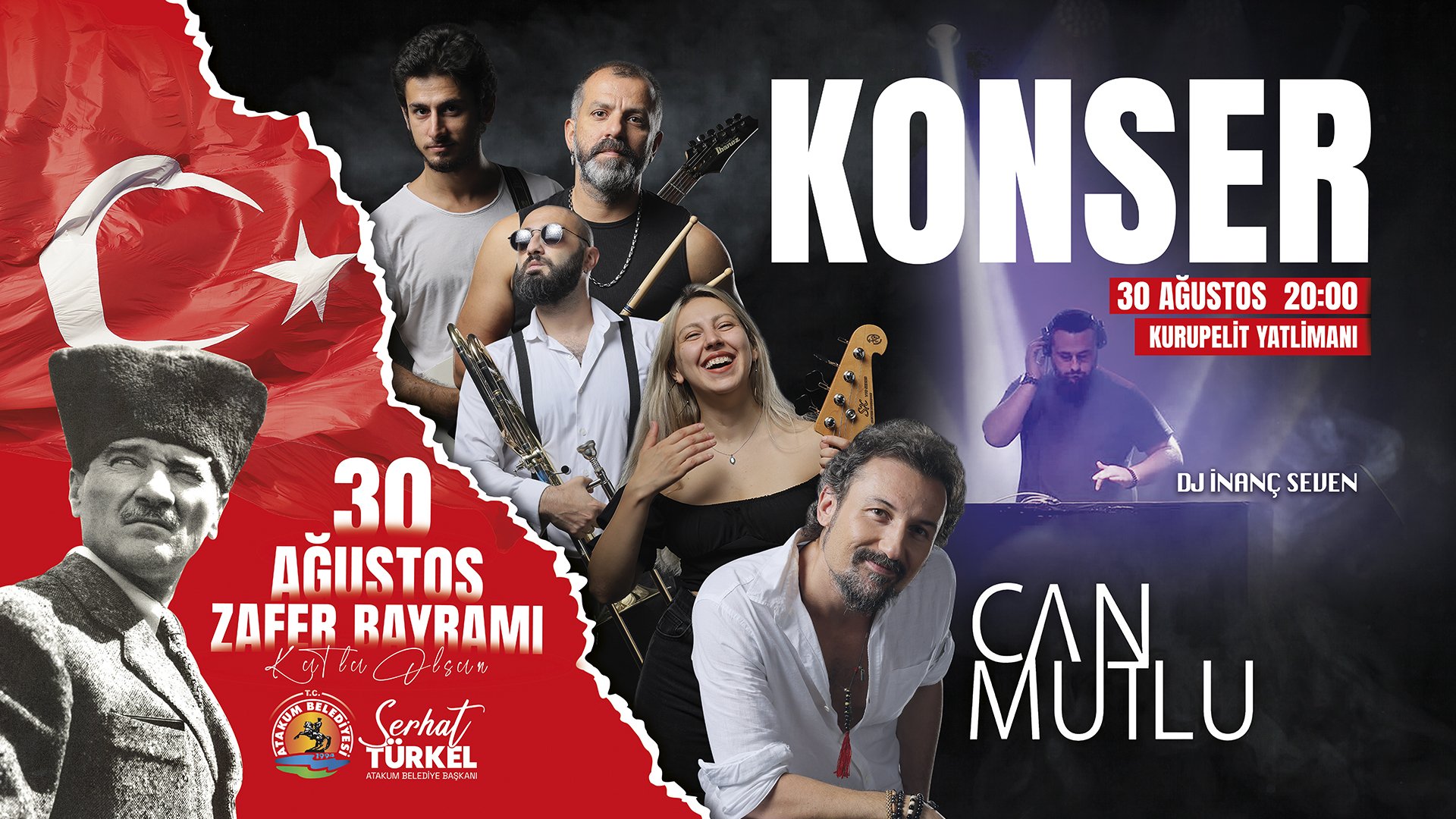 Atakum Belediyesi, ayrıca Kurupelit Yat Limanı’nda 30 Ağustos Konseri düzenleyecek. Program, saat 20.00’de DJ İnanç Seven’in ritim dolu müzik dinletisiyle başlıyor. DJ Seven’in ardından Müzisyen Can Mutlu ve Orkestrası sanatseverlerle buluşacak. Birbirinden özel eserlerin seslendirileceği konser programı, Atakum Sahili’nde müzik şöleni yaşatacak.