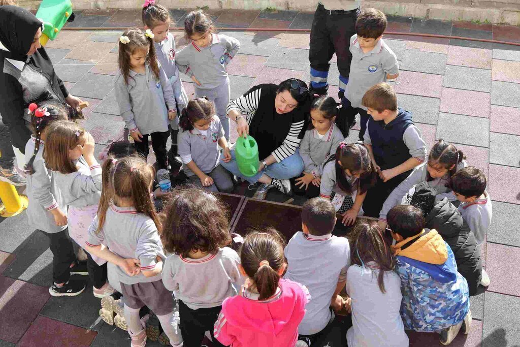 Merkez çalışanlarından Ziraat Mühendisi Asiye Nilgün Erdem çocuklara eğlenceli bir şekilde tarım hakkında bilgi veriyor. Derslerde tohum ve bitki nedir, nasıl oluşur, nasıl ekilir başta olmak üzere toprakta yetişen mahsullerin günlük hayattaki önemi, basit tarım aletleri gibi başlıklarda minikler bilgilendiriliyor.