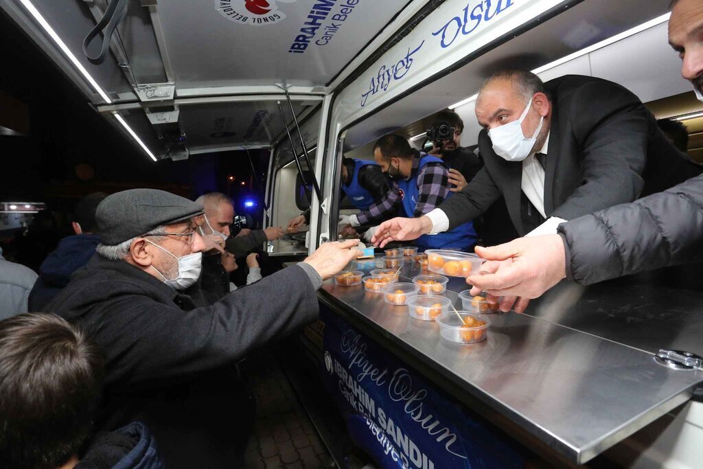 ‘Gönül Sofrası’ uygulamasının vatandaşlar tarafından ilgiyle karşılandığını beyan eden Canik Belediye Başkanı İbrahim Sandıkçı, fiziksel yatırımların yanı sıra ilçede ’Sosyal Belediyecilik’ ve ‘Gönül Belediyeciliği’ anlayışıyla hizmet vermeye devam ettiklerini sözlerine ekledi. Başkan İbrahim Sandıkçı, “Halkla yakınlık kurmak ve gönül bağımızı güçlü kılmak üzere ‘Gönül Sofrası’ ekibimiz sürekli sahada hizmet vermektedir. Ekibimiz her sabah vatandaşlarımıza sıcak çorba, Cuma günleri de nohutlu pilav ikramında bulunuyor. Geçtiğimiz Regaip Kandili’nde de Gaziosmanpaşa Mahallemizde lokma dağıttık” dedi.