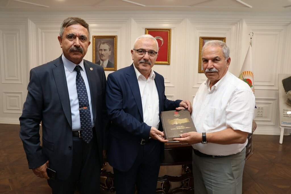 Ziyaretin sonunda Belediye Başkanları Birliği (BBB) Kurucu Başkanı Süleyman Kaldırım,İlkadım Belediye Başkanı Necattin Demirtaş’a Hüd süresini yazıldığı tabloyu 2019-2022 yılları Belediye Başkanları Albümünü hediye etti.