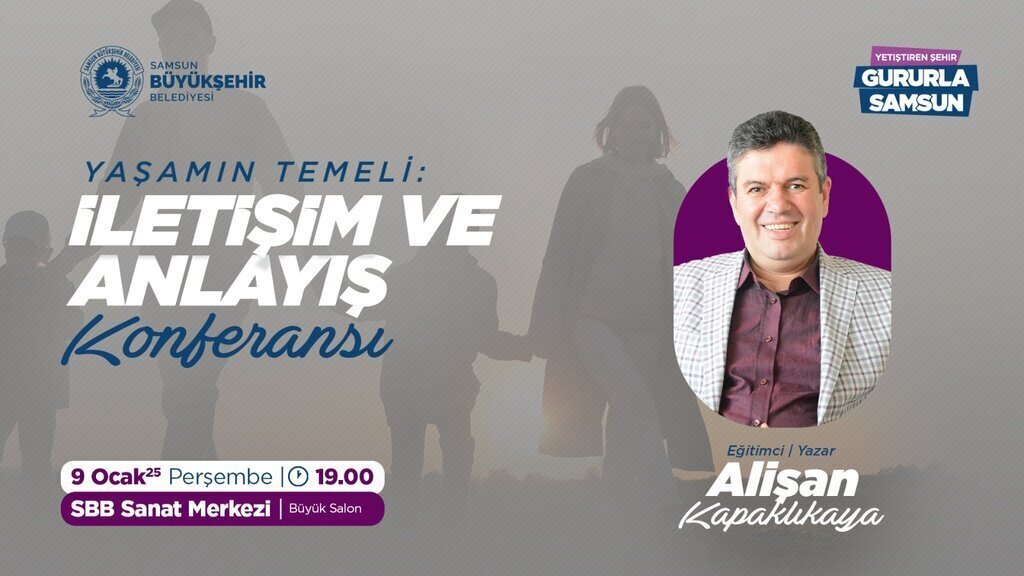 Şehrin kültürel zenginliği ve gelişimine sunduğu katkılarla adından sıkça söz ettiren Samsun Büyükşehir Belediyesi “Yaşamın Temeli: İletişim ve Anlayış” konulu konferansla Eğitimci-Yazar Alişan Kapaklıkaya’yı Samsunlu vatandaşlarla buluşturacak. Konferans 9 Ocak Perşembe günü saat 19.00’da SBB Sanat Merkezi Büyük Salon’da ücretsiz olarak gerçekleşecek.